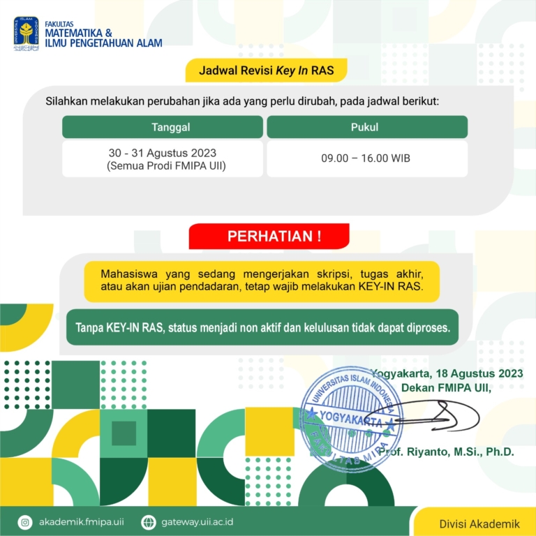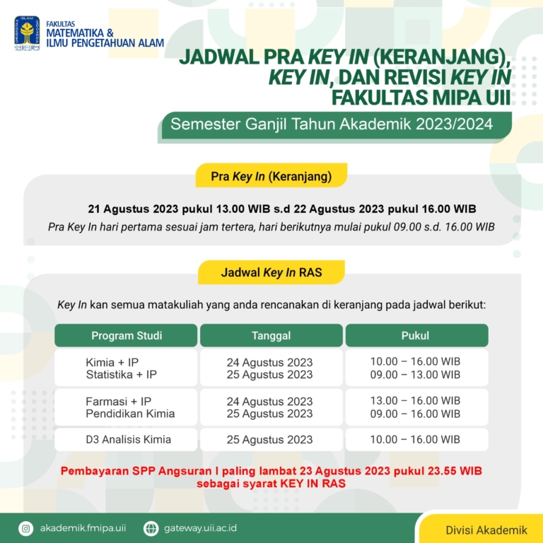 Jadwal PRA KEY IN (Keranjang), KEY IN, dan REVISI KEY IN Fakultas MIPA Universitas Islam Indonesia Semester Ganjil TA 2023/2024