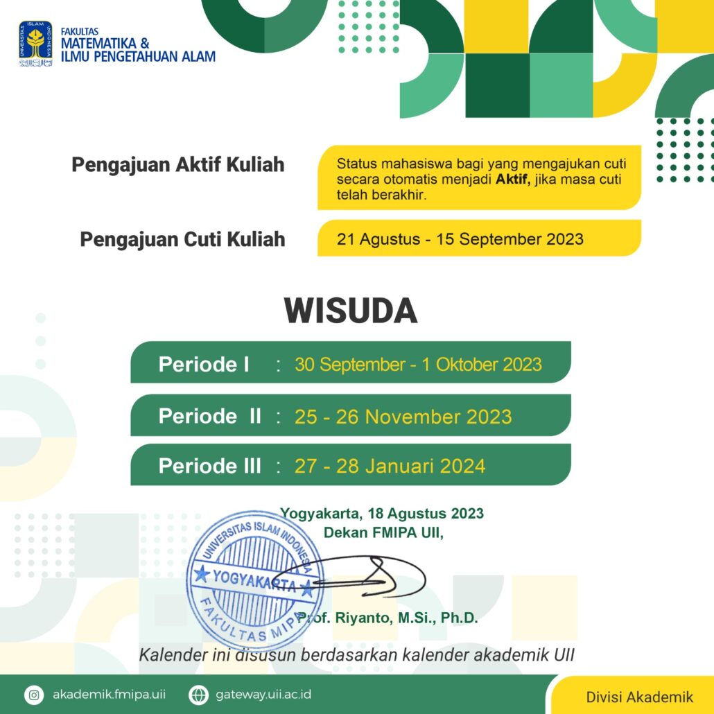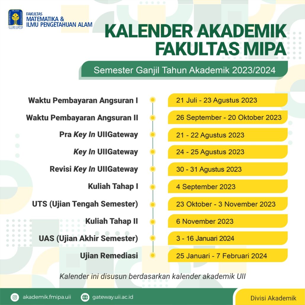 Kalender Akademik Fakultas MIPA Universitas Islam Indonesia Semester Ganjil Tahun Akademik 2023/2024