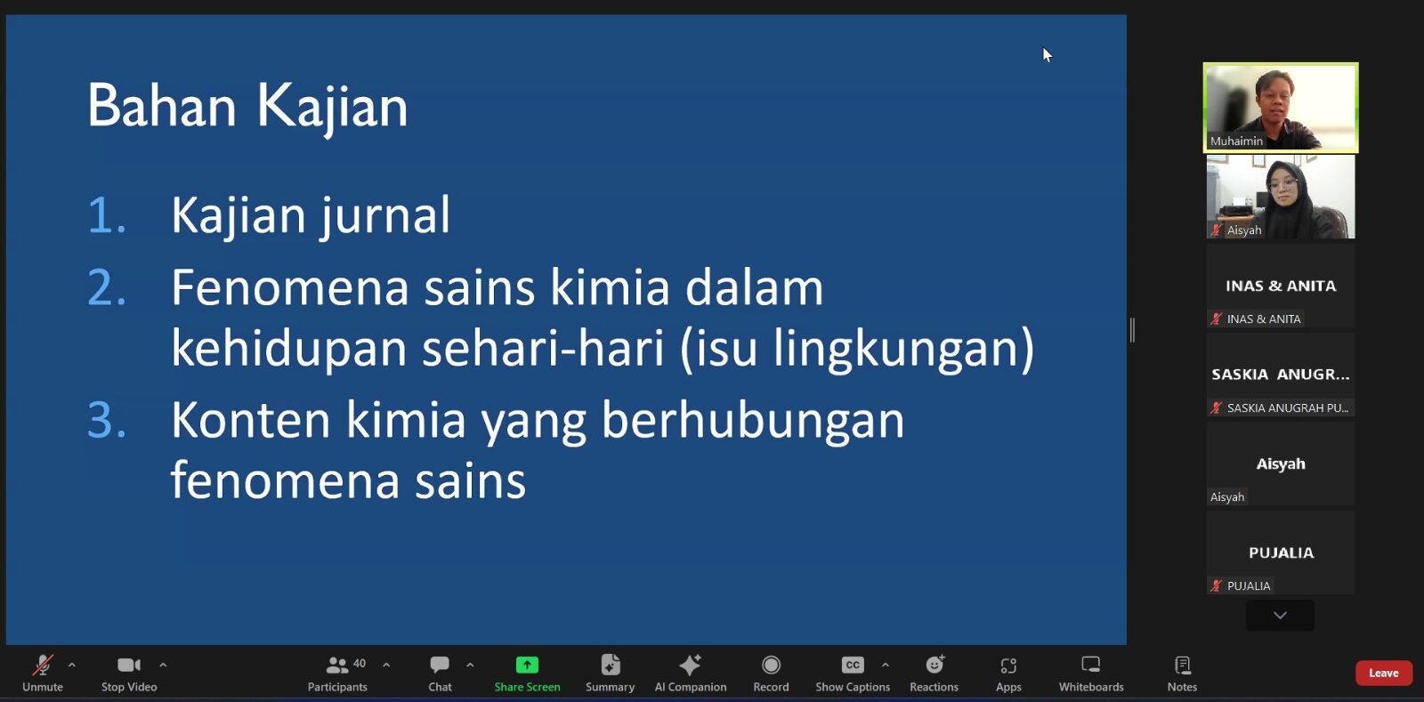 Dalam webinar yang penuh antusiasme ini, Muhaimin memaparkan pentingnya literasi kimia, yaitu kemampuan untuk memahami, menggunakan, dan menerapkan konsep-konsep kimia baik dalam kehidupan sehari-hari maupun dalam konteks akademik dan profesional. Literasi kimia mencakup pengetahuan dasar tentang unsur-unsur kimia, reaksi kimia, dan sifat-sifat material.