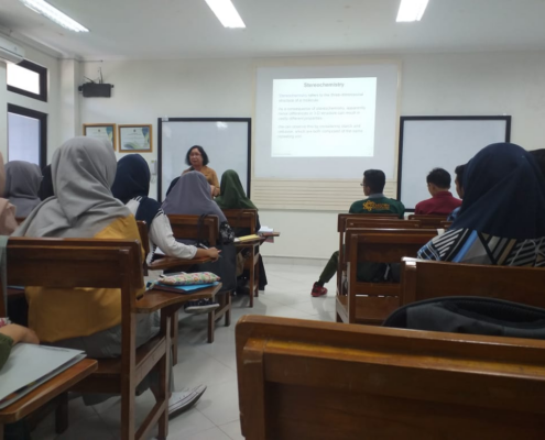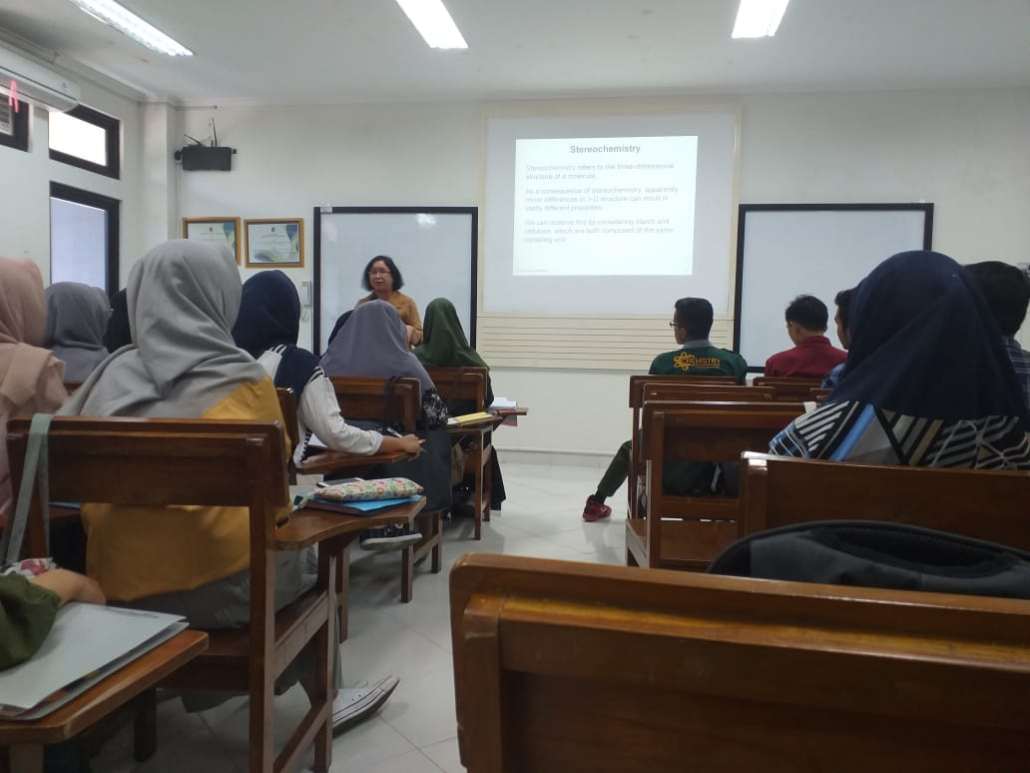 Visiting Professor ini dilaksanakan di bulan September 2019 dengan menghadirkan Prof Maribel Notato dari University of Santo Tomas, Filipina (9-17 September 2019). Kegiatan ini dilaksanakan sebagai salah satu bentuk awal untuk memfasilitasi kerjasama internasional khususnya dalam peningkatan kualitas pendidikan dan dosen yang berada di lingkungan Jurusan Kimia FMIPA UII. Selain itu kegiatan ini guna mewujudkan salah satu impian dari UII untuk menjadi “universitas terkemuka berstandar internasional dan mampu berperan aktif dalam pembangunan bangsa melalui proses pendidikan, penelitian dan pengabdian kepada masyarakat”. Oleh karena itu Pendidikan Kimia FMIPA UII mengundang dosen-dosen dari universitas luar negeri untuk melakukan kegiatan mengajar dan/atau penelitian. Kegiatan Visiting Professor mengundang para ahli yang memiliki latar belakang kesamaan atau keselarasan bidang ilmu kimia untuk mengembangkan konsep “Kimia Berkelanjutan”.